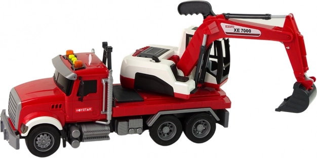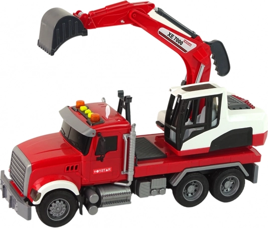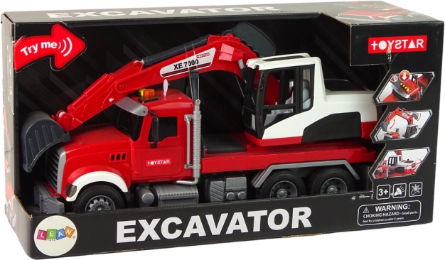 Deze gedetailleerde set bevat een trekker met aanhanger en een volwaardige graafmachine. De cabine van de graafmachine draait 360° voor gemakkelijk bereik op de “bouwplaats”; de bak is in hoogte en hoek verstelbaar voor graven, scheppen en verplaatsen van materiaal. Kinderen genieten van realistisch spel dankzij de licht- en geluidseffecten die worden bediend met drie knoppen op het dak.