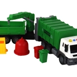 Deze geweldige speelgoedset is een ideale keuze voor alle liefhebbers van vrachtwagens en vuilniswagens. Het is niet alleen leuk speelgoed, maar ook een geweldige manier om kinderen te leren over ecologie, de principes van afvalscheiding en het belang van zorg voor ons milieu.