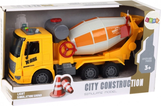 Het voertuig is vervaardigd op schaal 1:16, waardoor het geschikt is om op verschillende terreinen mee te spelen. De betonmixer heeft een beweegbare mengtrommel, wat een interactief element aan het spel toevoegt. De auto is uitgerust met geluidseffecten die het starten van de motor en het achteruitrijden nabootsen, wat de realistische beleving nog verder versterkt.