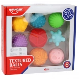 Gemaakt van zacht en veilig materiaal, zijn de ballen ideaal om vast te pakken, te gooien en te rollen. Hun gevarieerde texturen stellen kinderen in staat de verschillen tussen gladde en ruwe oppervlakken te ontdekken en spelenderwijs te leren.