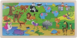 Ontdek een leuke en educatieve houten puzzel met safarithema met 96 stukjes, die de fijne motoriek, het logisch denken en de geduldigheid van kinderen ontwikkelt. Het grote formaat van 44,5 × 22,5 cm is ideaal voor kinderen vanaf 3 jaar.