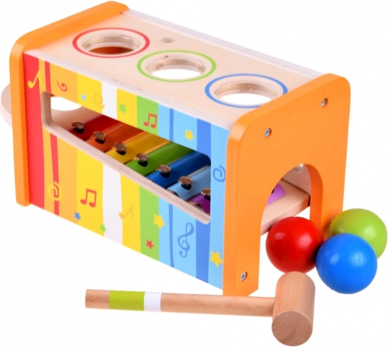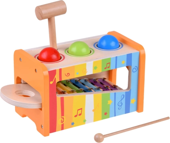 Kinderen kunnen met het hamertje gekleurde balletjes door de openingen in het frame slaan, die bij het neerkomen op de xylofoon verschillende klanken produceren. Deze activiteit bevordert zowel de motoriek als het muzikale gehoor.