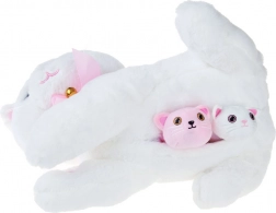 Twee kleine kittens verstopt in de buik van de mama stimuleren rollenspel en fantasie. De superzachte pluche nodigt uit om te knuffelen.