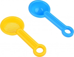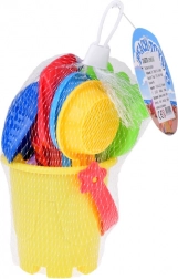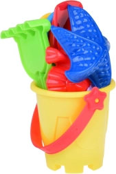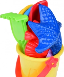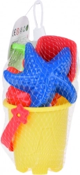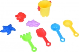 • Inhoud van de set: 1× emmer, 3× vormpje (zeester, zeepaardje, dinosaurus), 2× schepje, 1× hark, 1× zeef