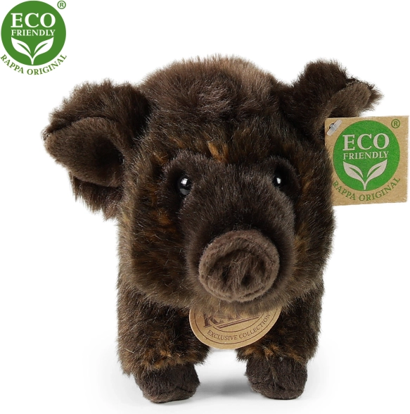 Een schattig pluchen wild zwijn van 20 cm van het merk RAPPA, met een realistische uitstraling, zachte afwerking en respect voor de natuur. Het is met de hand genaaid van hoogwaardig pluche en heeft een ECO‑FRIENDLY vulling van gerecyclede PET-flessen. Een geweldig cadeau voor kleine en grote dierenliefhebbers en fans van knuffelzachte pluchen speelgoed.
