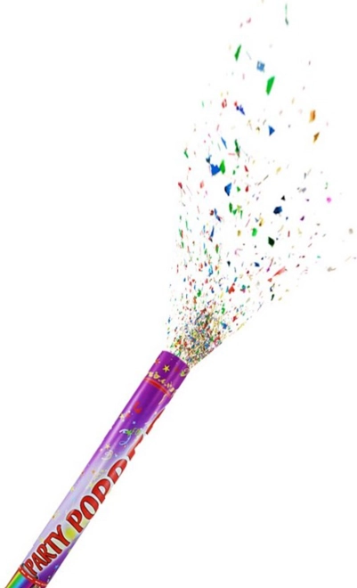 • Directe party-sfeer – een rijke salvo van kleurrijke confetti.