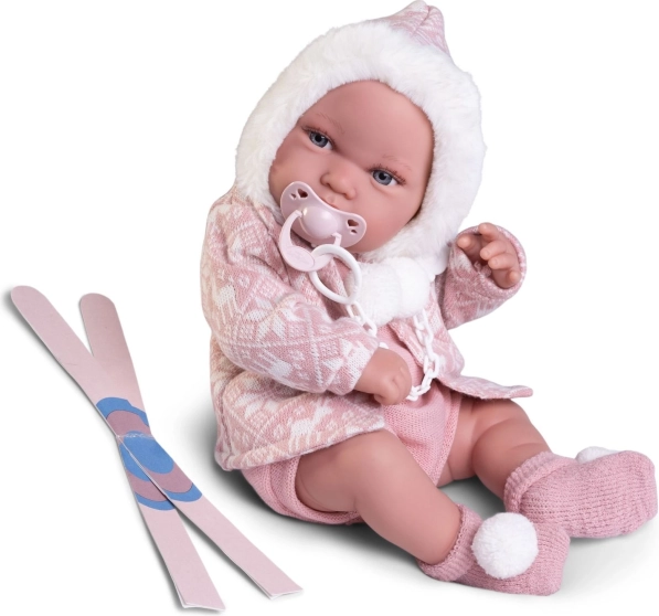 Bereid je voor op winterse avonturen met deze realistische babypop van het gerenommeerde merk Antonio Juan. Gekleed in een zacht roze outfit met gebreide details en een mutsje met pompon, charmeert ze door haar schattigheid en details. Een geweldig cadeau voor kinderen dat de fantasie tijdens het spelen stimuleert.