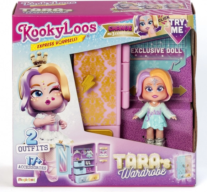 De set bevat de unieke pop Tara, die wordt gekenmerkt door veranderende gezichtsuitdrukkingen en een stijlvol design.