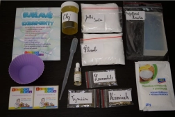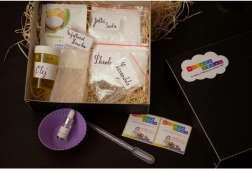 Zeepbasis, ingrediënten voor het maken van bruisballen, aromatische essences, handleiding.