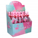 Geniet van plezier met de originele 2-in-1 bellenblaas in de vorm van een flamingo, die niet alleen prachtige bellen maakt, maar ook geluiden produceert dankzij het fluitje.