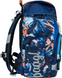 Een voorvak met rits, zijvakken met flesbevestiging en een eenkamer-interieur bieden voldoende ruimte voor alle schoolbenodigdheden.