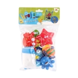 De set bevat 6 verschillend gekleurde diertjes die elke badtijd opvrolijken.
