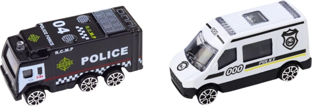 In de doos zitten 2 politieautootjes 1:64 en 7 verkeersborden, waarmee kinderen eenvoudig eigen scenario’s maken, basisverkeersregels leren en hun fantasie en fijne motoriek ontwikkelen. De set is geschikt voor kinderen vanaf 3 jaar en voldoet aan de veiligheidsnormen CE en EN71.
