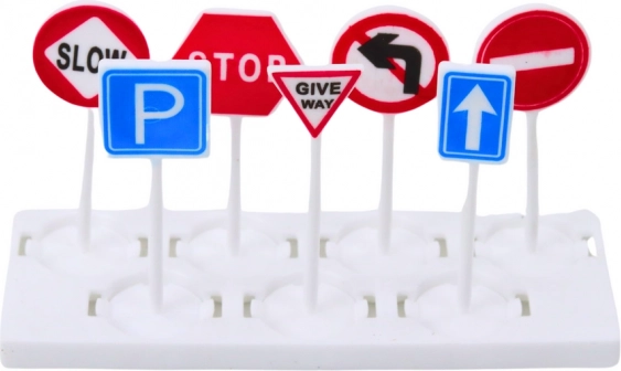 - 2 politieautootjes, 7 verkeersborden