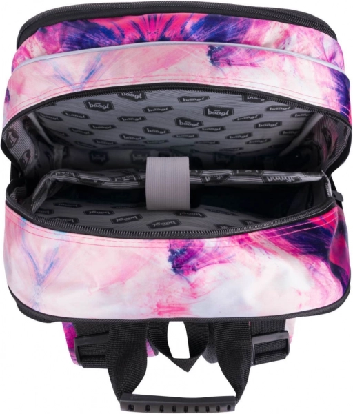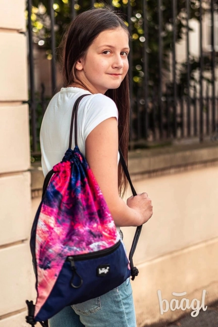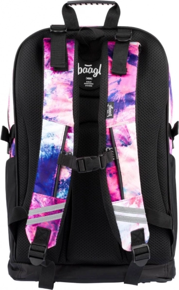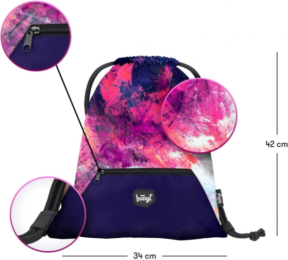 Stijlvolle schools et voor meiden BAAGL Abstract bevat een ruime rugzak met drie vakken, een praktische gymzak en een stevige etui. Biedt ergonomische rug, rijke indeling, reflecterende elementen en duurzame materialen in een modern paars‑roze design met details. Ideaal vanaf groep 5 van de basisschool.
