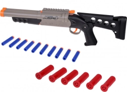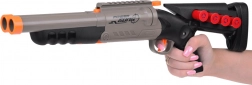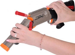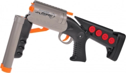 In de verpakking zitten 6 hulzen en 10 foam pijltjes met zuignap, die eenvoudig in de hulzen geschoven worden voor snelle “munitie”-voorbereiding. Het wapen klapt halverwege open voor comfortabel laden, de pompmechaniek zorgt voor een soepele werking en de stabiele kolf helpt bij nauwkeurig mikken.