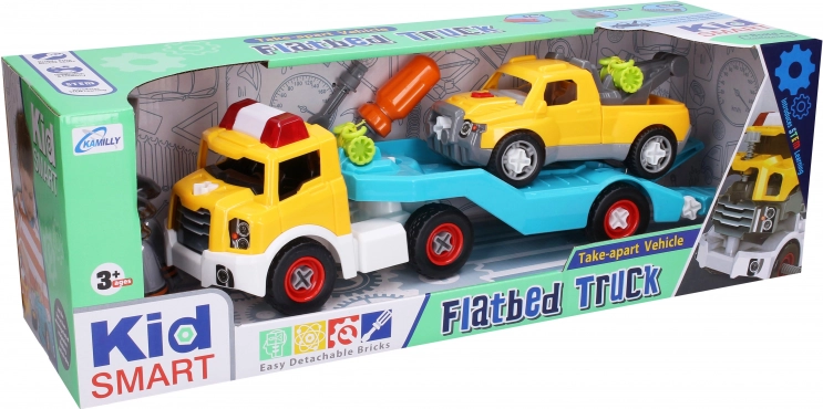 Deze schroefbare takelwagen biedt kinderen realistisch spel rondom service en het wegslepen van voertuigen. Dankzij de gemakkelijk te bedienen schroeven kunnen kinderen de auto en takelwagen zelf uit elkaar halen en weer in elkaar zetten, wat creativiteit en technisch inzicht stimuleert. De robuuste afwerking is ideaal voor dagelijks spel.