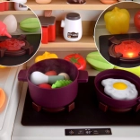 Bij het draaien aan de knop lichten de kookplaten op, klinken realistische geluiden en komt er veilige stoom uit de brander – net als bij echt koken.