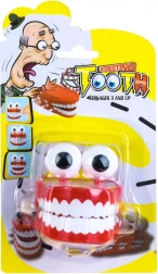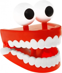 Dit plastic speeltje met een opwindbaar veermechanisme komt in beweging nadat je het sleuteltje draait en laat de tanden ritmisch klapperen. Het vrolijke design met grote cartoonogen tovert een glimlach op ieders gezicht en zorgt voor vermaak thuis, op school en op kantoor.