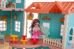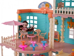 In de set vind je een complete uitrusting, inclusief 3 poppen met lang haar geschikt om te kammen, meubels en buitenaccessoires zoals een schommel, parasol en zelfs een tafel voor pingpong. Het huis is gemaakt van hoogwaardige kunststoffen in levendige kleuren die meteen in het oog springen.