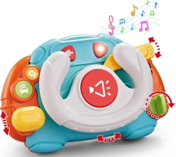 Dit kleurrijke stuur is perfect voor kinderen die graag autorijden nadoen. Realistische functies zoals stuurrotatie, schakelen van richtingaanwijzers en starten met de sleutel worden aangevuld met lichteffecten en motorgeluiden, claxon en muziek. Het speelgoed is licht, compact en past gemakkelijk in de kinderwagen of reistas.