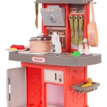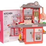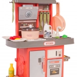 De kraan met watercirculatie (pompje) voegt authenticiteit toe, terwijl de rijke accessoires – servies, keukengerei en etenswaren – kinderen in staat stellen een “menu” naar eigen fantasie te maken. De keuken werkt op 3× AA 1,5 V (niet inbegrepen).