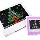 Transformeer het spel van uw kind naar een wereld vol kleuren en fantasie met dit lichtbord! De zwarte plaat met openingen maakt het mogelijk om gekleurde pinnetjes gemakkelijk in elk gewenst patroon te plaatsen volgens uw ideeën. Kinderen kunnen altijd hun eigen creaties maken of bijgeleverde sjablonen gebruiken voor inspiratie.
