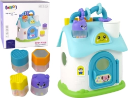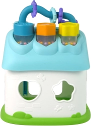Het driehoekige huisje is het ideale eerste speelgoed voor uw kind. Dankzij het niet-giftige materiaal is het volledig veilig voor kinderen. Het heeft de vorm van een blauw-wit huisje en is voorzien van een handvat met vier verschillende ringen die van de ene naar de andere kant kunnen worden verplaatst. Dit maakt het gemakkelijk om het speelgoed overal mee naartoe te nemen. Het bevat ook een witte schoorsteen voor het inwerpen van blokken, die bij elke inworp een geluid maken en een geel gezicht op het huisje laten oplichten.