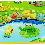 De kleurrijke educatief-muzikale mat heeft een positief effect op de ontwikkeling van je kleintje. Het stimuleert de motorische, coördinatie- en luistervaardigheden. Spelend op de zachte mat leert je kind de geluiden van een hondje, kikker, eendje, kuikentje, koe, paard en schaap.