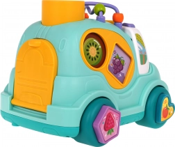 Interactieve sorteerbus voor kinderen vanaf 18 maanden ontwikkelt fijne motoriek, herkenning van vormen en kleuren en oog-handcoördinatie. Biedt licht- en muziekeffecten, vormen sorteren aan de zijkanten én in de wielen, het plaatsen van ratelende balletjes met een hamertje en een handig deurtje om de onderdelen makkelijk te verwijderen.