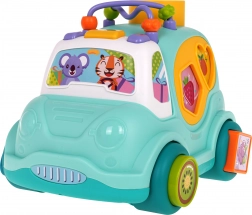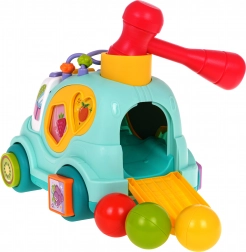 Deze kleurrijke bus biedt kinderen uren speel- en leergenot in één. Aan de zijkanten en in de wielen vinden kinderen openingen voor vormensorteren, op het dak een invoer voor balletjes, die ze met het hamertje met plezier naar binnen kunnen tikken. De balletjes hebben rammelaars binnenin, waardoor het spel nog leuker en zintuiglijk stimulerend is.