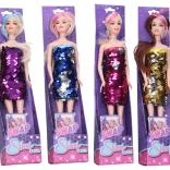 Aankleden, haar doen en de stad in voor plezier! Deze stijlvolle pop met een kleurrijke streep in het haar en glimmende jurk waarvan de kleuren veranderen met een handbeweging, is ideaal voor elk klein meisje.