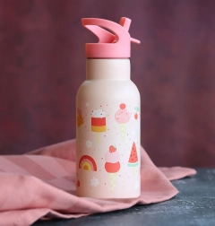 Stijlvolle roestvrijstalen kinderfles met ijsjesmotief en een inhoud van 350 ml houdt dranken langer vers dankzij de dubbelwandige isolatie. Een praktische drinktuit met rietje voor koude dranken en slijtvaste materialen zorgen voor comfortabel en veilig gebruik thuis, op school en tijdens uitstapjes.