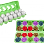 Bij het combineren oefenen kinderen oog-handcoördinatie, waarneming van kleuren en vormen en verbeteren zij geheugen en concentratie. Duurzame en veilige materialen zorgen voor een lange levensduur en zorgeloos spel. De compacte afsluitbare doos in de vorm van een eierdoos maakt opbergen en meenemen eenvoudig.