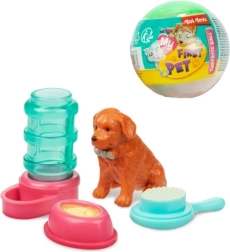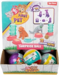 Deze schattige MY FIRST PET verrassingsbal maakt elke kleine dierenliefhebber blij. Binnenin vind je een figuurtje van een hondje of katje en meteen drie accessoires voor leuk rollenspel in de verzorging van een huisdier.