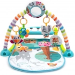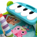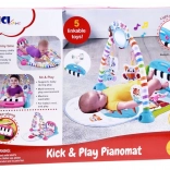 De interactieve piano met lichteffecten en melodieën motiveert kinderen om met voetjes en handjes te bewegen. Hangspeeltjes, rammelaars en een babysafe spiegeltje ontwikkelen zicht, gehoor en tast en ondersteunen de oog-handcoördinatie. De mat is zacht, aangenaam aan te raken en gemakkelijk te onderhouden.