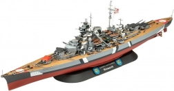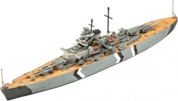 Het scheepsmodel is een replica van de Bismarck, een van de machtigste slagschepen van de Duitse Kriegsmarine uit de Tweede Wereldoorlog. Dit schip werd in 1939 in dienst genomen en stond bekend om zijn grootte en vuurkracht, hoewel het zijn carrière beëindigde met een dramatische ondergang in een gevecht met de Royal Navy in mei 1941.