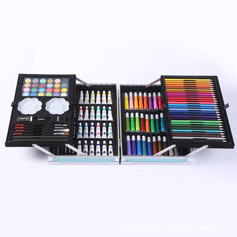 Stimuleer de verbeelding en creativiteit van je kind met deze uitgebreide kunstset. De set bevat een gevarieerd palet aan kleuren en verschillende soorten materialen, van stiften en kleurpotloden tot aquarelverf. Alle onderdelen zijn netjes opgeborgen in een verstevigde koffer die dankzij het comfortabele handvat gemakkelijk te dragen is, ideaal om niet alleen thuis te tekenen en schilderen, maar ook op school of tijdens uitstapjes.