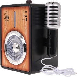 De kinderkaraokeversterker biedt een geweldige mix van muziek, licht en speelfuncties. De bedieningsknoppen zijn overzichtelijk, het volume regel je met een draaiknop en na het inschakelen worden kinderen verwelkomd met een vrolijke melodie en lichtshow. Sluit de microfoon aan, zet rocknummers of kindermelodieën aan en de show kan beginnen.