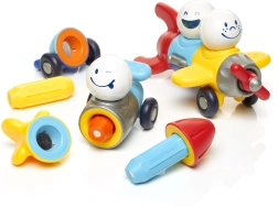 De set laat kinderen verschillende voertuigen naar eigen fantasie bouwen. Combineer de onderdelen en maak in een handomdraai nieuwe varianten.