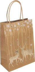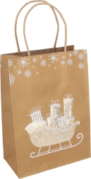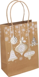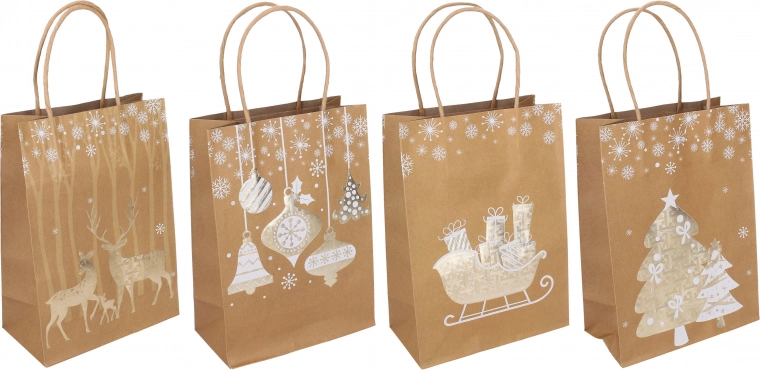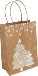 Elegante kerstcadeautas in maat S met afmetingen 15 × 21 × 8 cm, ideaal voor kleine geschenken. Biedt stijlvolle kerstmotieven, een stevige uitvoering en een praktisch handvat voor comfortabel dragen. Beschikbaar in 4 designvarianten.