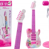 Roze elektrische kindergitaar met standaard en microfoon op batterijen