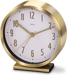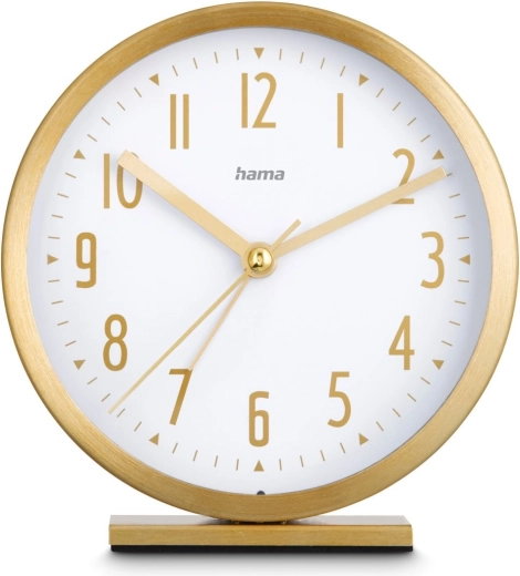 Word altijd op tijd en met stijl wakker. Deze elegante gouden wekker met analoge wijzerplaat en grote gouden Arabische cijfers biedt een fluisterstille werking met een vloeiende secondewijzer, eenvoudige instelling van één alarm en een compact formaat van 11,3 cm dat op elk nachtkastje past.