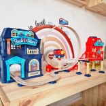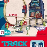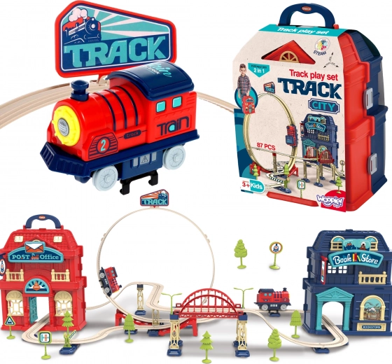 De WOOPIE Track City treinbaan brengt kinderen een rijke fantasiewereld op 3,5 meter rails. Dankzij de lus, het viaduct en de spoorwegovergang maken kinderen gemakkelijk dynamische banen en scènes uit de stad. De 2-in-1 koffer werkt als praktische verpakking en als onderdeel van de speelwereld – eenmaal uitgeklapt vormt hij twee stijlvolle gebouwen (bijv. postkantoor en boekhandel) die verhalen en spel verrijken.