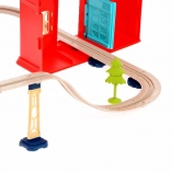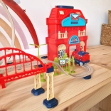 De locomotief met geluidseffecten geeft het spel de sfeer van een echte spoorweg. Vereist AAA-batterijen (niet inbegrepen).