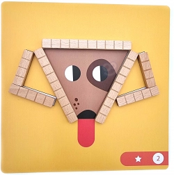 Deze houten magnetische set combineert spel en leren. Kinderen leggen verschillende magnetische stokjes op kleurrijke sjablonen met dieren en vormen, waarmee zij ruimtelijke verbeelding, oog-handcoördinatie en kleurherkenning trainen. De magnetische box houdt de stukjes en figuren op hun plaats, waardoor de set thuis en op reis gemakkelijk te gebruiken is.