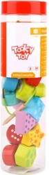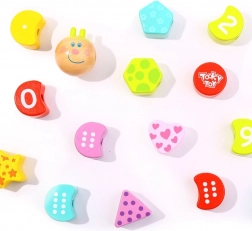 De genummerde en gevormde blokjes worden aan een koord geregen, waardoor kinderen op natuurlijke wijze het tellen, sorteren en de volgorde oefenen. Ideaal voor de eerste rekenstapjes.