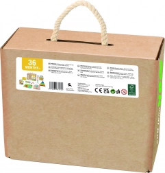De veilige houten onderdelen van Tooky Toy zijn glad afgewerkt en gekleurd met niet-giftige verven. Dankzij de gevarieerde activiteiten is de set perfect voor thuis leren, gezamenlijk familieplezier en als cadeau voor driejarigen.