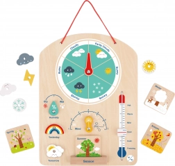 Met behulp van draaibare wijzers noteren kinderen het huidige weer, de temperatuur en het seizoen. Een fijne routine voor ochtend- en avondmomenten én de uitbreiding van de woordenschat.