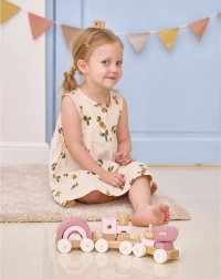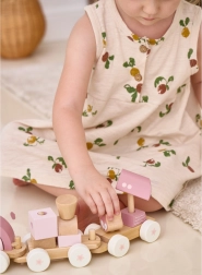 Het PolarB-houten treintje in zachte roze en natuurlijke tinten biedt eindeloze speelmogelijkheden. Kinderen kunnen wagonnetjes koppelen, unieke combinaties van blokken bouwen of met de losse onderdelen apart spelen. De praktische vormen liggen goed in kleine handjes en stimuleren handigheid en fantasie.